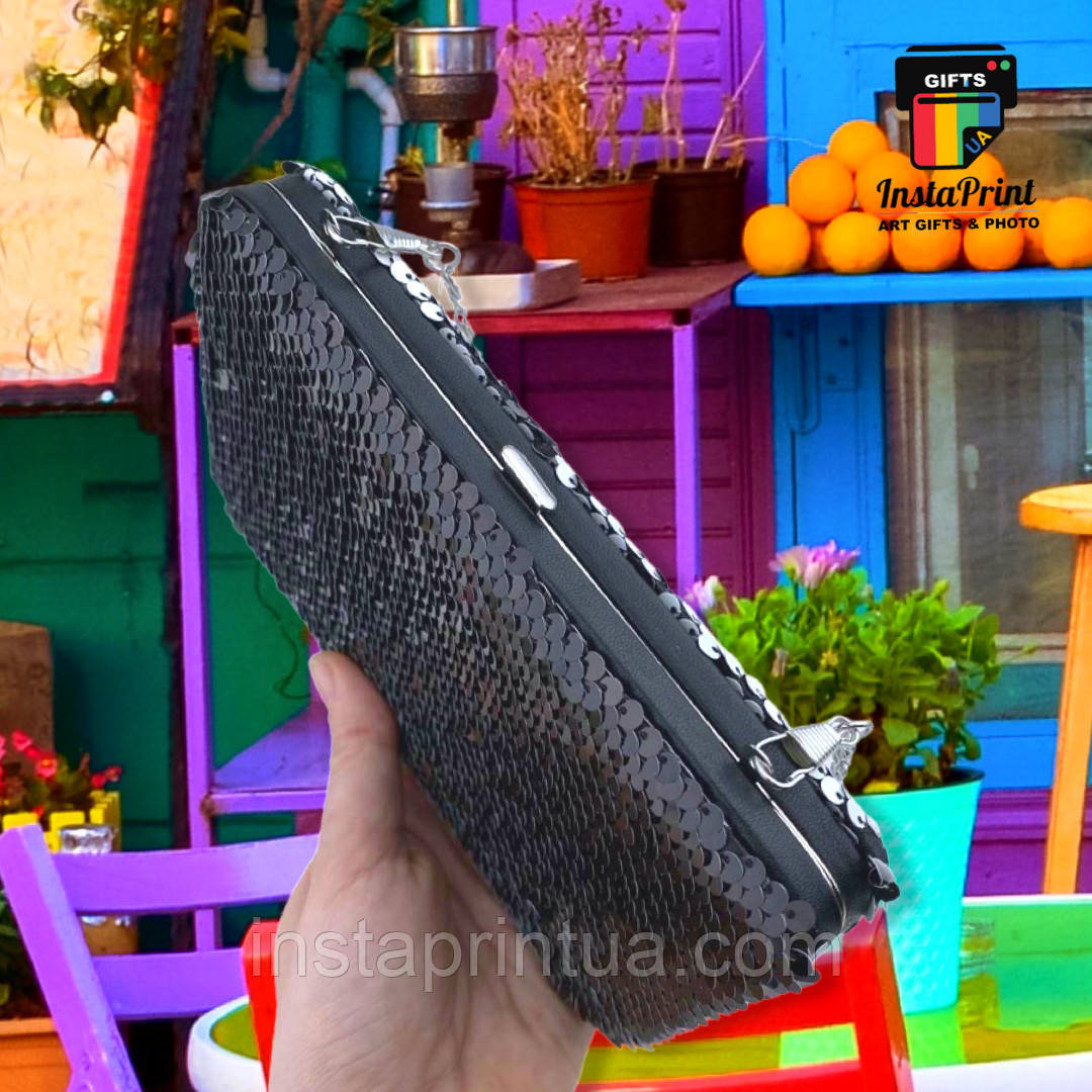 Сумка Клатч із паєтками чорний + друк на ній з 2 боків