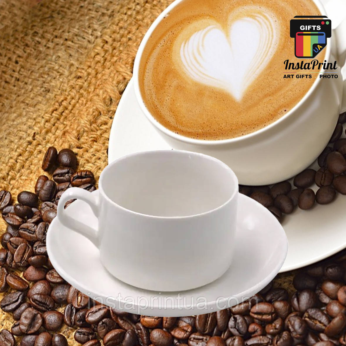 Чашка для кави з блюдцем + друк фото, картинка, напис, лого